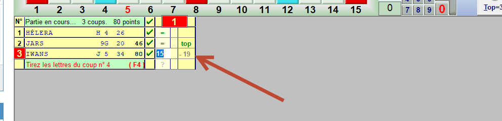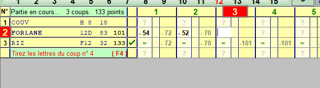 Abandon d'un joueur => Ok CTRl+N partiellement implémenté : il manque les négatif affichés dans les colonnes cumul du tableur , et également les négatifs entre parenthèses dans la barre d'état. voir captures ci-dessous. |