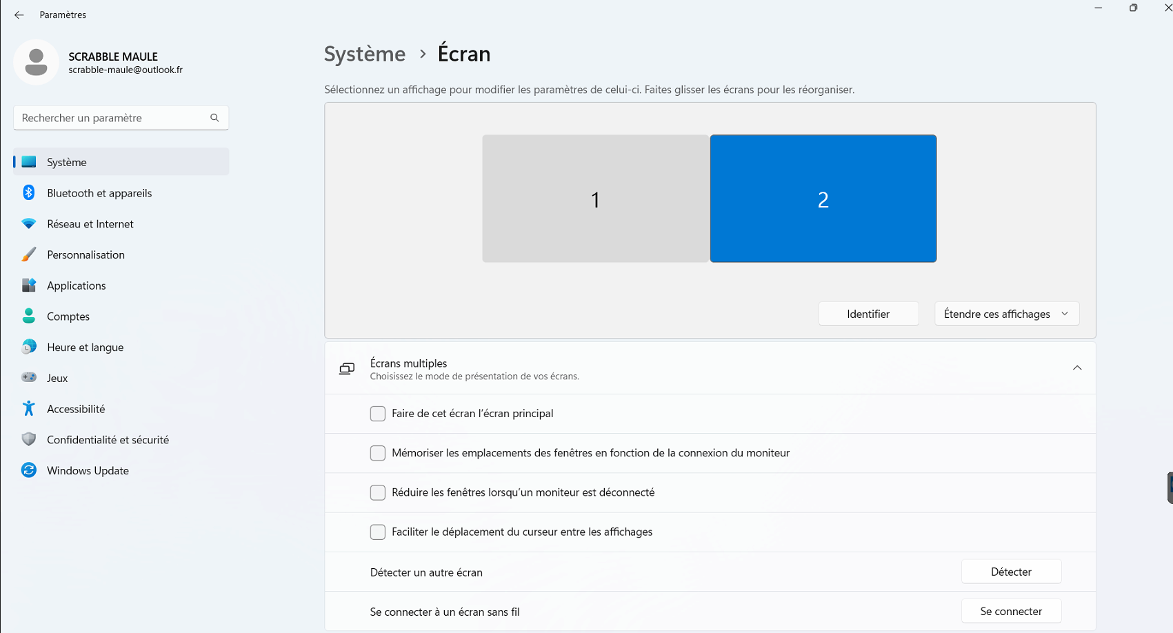 | Description | Sur certains PC Windows 11 l'affichage du tableau électronique s'effectue toujours sur l'écran numéro 1 à savoir l'écran de l'ordinateur. Normalement l'affichage devrait se faire selon le choix de l'utilisateur. Prévoir également l'affichage du nom de l'écran (ou de la marque) cela est un peut simple pour s'y retrouver. | ||||