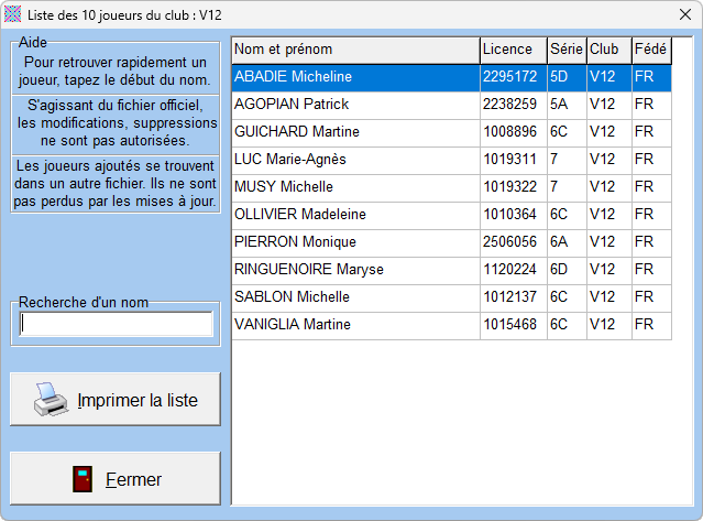 | Résumé | 0001232: Joueurs > liste des joueurs du clubs | ||||