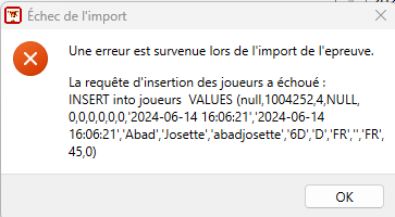 | Description | J'ai essayé "Sauvegarder un tournoi" dans le but de tester "Restaurer un tournoi". | ||||