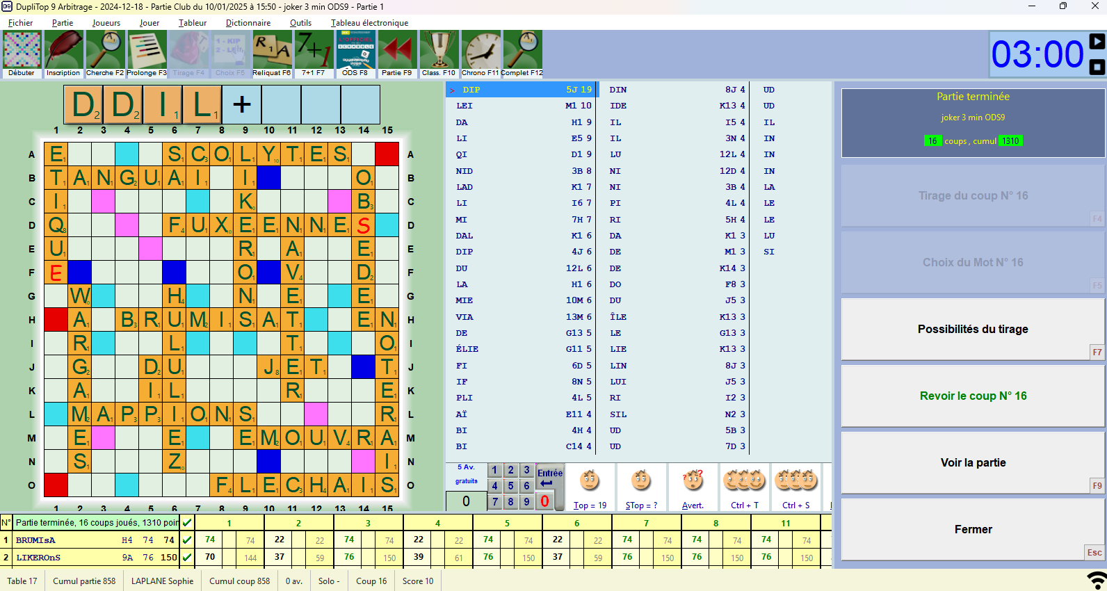 | Description | en fin de partie quand je dois me mettre d'accord avec le cumul présumé des joueurs, je navigue très vite dans le tableur soit sur le coup d'un joueur (touches droit ou gauche) soit sur un coup (touche haut ou bas) si je vais trop vite ou si je reste appuyé sur la touche de déplacement il n'est pas rare que le module arbitrage se ferme. Je retrouve les données en relançant le module mais c'est une perte de temps. | ||||