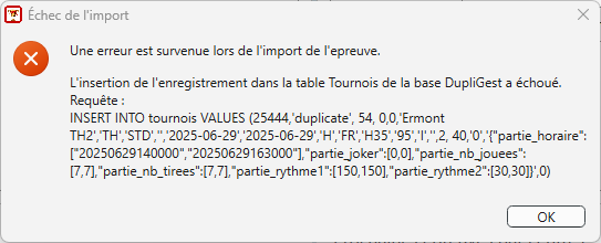 | 13-07-2025 17:18 | mstainer | Fichier ajouté: Échec restauration.png | |