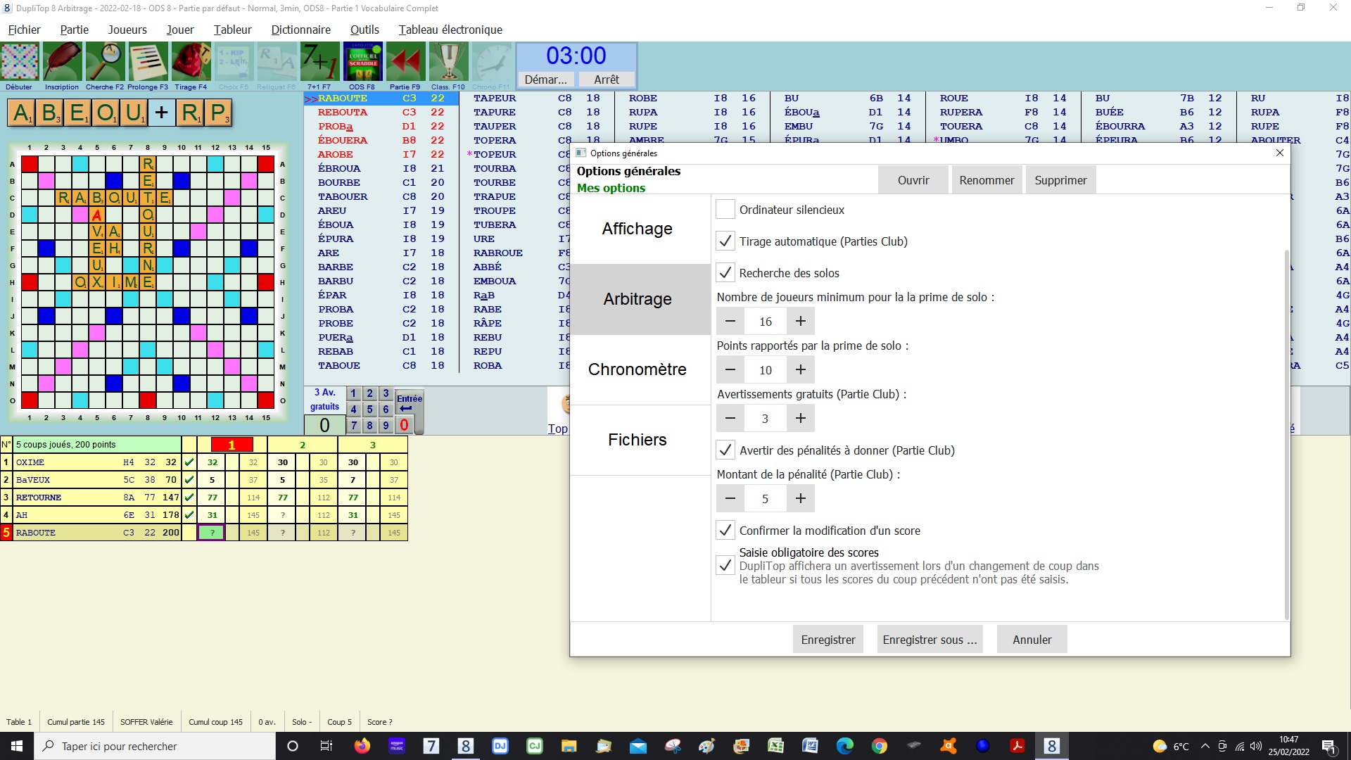 | Description | J'ai coché dans les options arbitrage la case permettant d'être alerté quand un score n'a pas été saisi lors d'un changement de coup: Je n'ai eu aucune alerte alors qu'un joueur n'a pas été arbitré. | ||||