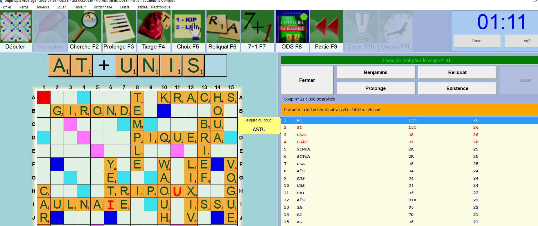 DupliTop 8.0 EntrainementAssiste - Entra�nement - Normal, 3min, ODS8. Valeur de la prime de Scrabble : 50 1. PXSR?OI 2. S+VUSIUI RIPO(U)X H 7 52 (XIPhO, H 4, 50) 3. IUV+EOGH ISSU I12 16 (SI, I11, 14) 4. HIU+IMAW VOGUE 15F 27 (V�, H14, 26) 5. IIM+ALEV WAOUH 10F 45 (WHIP, 9E, 19) 6. AM+RNEDO LIXIVIE 12F 38 (EXILAI, 12G, 30) 7. EJMYBTO MONDERA M 7 94 (MONARDE, M 8, 90) 8. BJMO+EEL YET 6F 49 (MOYE, 8L, 48) 9. BEEL+LTT MOJO* 8L 42 (EMBOLE, 8J, 36) 10. -RINEUBF BELLOTTE O 4 63 (BOTTELLE, O 7, 61) 11. NU+ETQNZ BRIEF 13C 39 (BRIEF, I 4, 32) 12. NQU+ODEP TENEZ L11 28 (NEZ, N13, 26) 13. OPQU+IEN ZEND 15L 42 (ZONE, 15L, 39) 14. -IMTEEGL PIQUER D 8 36 (�QUIN, 14A, 32) 15. GI+DNNRO TEMPLE 8A 27 (G�MIE, I 3, 26) 16. N+SLU?HA GIRONDE B 2 22 (GIRODYNE, F 1, 21) 17. ?HLNU+OA LIXIVIERAS 12F 35 (LIXIVIERaS, 12F, 34) 18. ?LN+UAEA HOUA 14A 34 (HoUA, 14A, 32) 19. SAREFCE AULNA(I)E I 1 73 (mILANEAU, 3A, 66) 20. CRASTAK CARAF�ES 1H 203 (CARAF�ES, 1F, 92) 21. AT+UNSI KRACHS A10 63 (KACHA, A11, 60) 22. ASTU NI 15C 26 (SINUA, 2K, 25) US�T J 5 26 (USA, J 5, 25) 1080 |